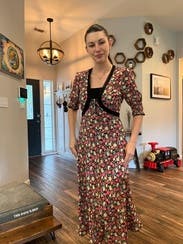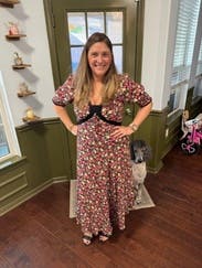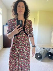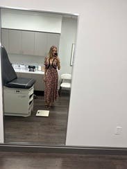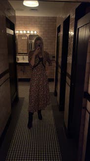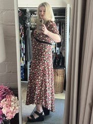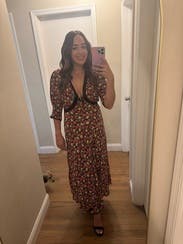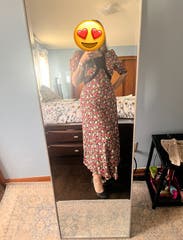 This dress is so cute! Wore it multiple times to dinner, a friend's birthday, and a winery. At 18 weeks pregnant, it showed off my little bump perfectly too.