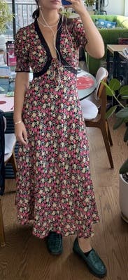 This is my first time renting this brand and I’m obsessed. Love this dress. It fit perfectly. I feel like you could wear this dress in the spring, summer, or fall. The dress is low so this wouldn’t be ideal for work.