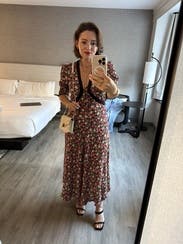 The fabric was elegant and high-quality, the flow in the fit and the details were just perfect. It was romantic and stylish, and I wanted to wear it every single day so contemplating buying it. Beware if you have big boobs it’s definitely booby licious and you will need a bra while wearing it. Dream dress!!