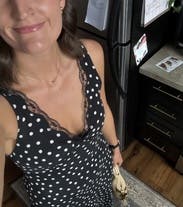 This dress is perfect for a date night. Length is perfectly midi for a tall woman, the lace v neck detail is really adorable, and I love that I can still get away wearing a bra which is nice!