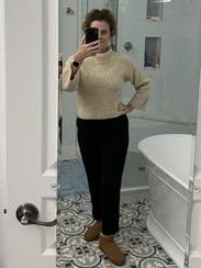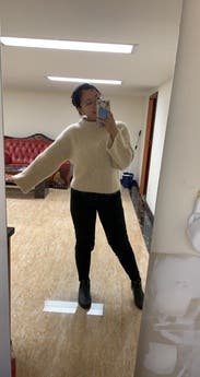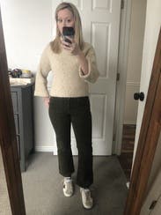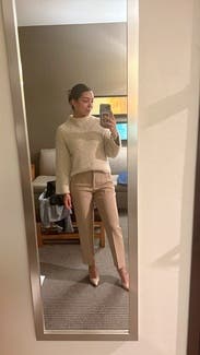 Wore this sweater so many times. Super cute and comfy, easy to dress up or down. Considering keeping!