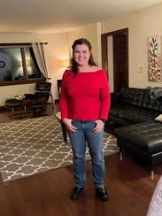 My favorite thing about this sweater is how rich the red is. It’s a great body hugging fit, so size up if you are between sizes. Only 4 stars because it can be a little annoying adjusting the shoulder area but I found if you pull it down far enough it will stay out for the most part and lay pretty flat. Would rent again.