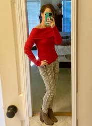If you’re a larger-chested gal, I highly recommend investing in a quality strapless bra for this piece. I didn’t like how the sweater shaped me, and didn’t end up wearing it.