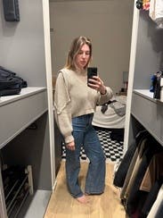Perfect for a casual day with jeans. Slightly cropped and super soft. Not scratchy at all. Easy to style!