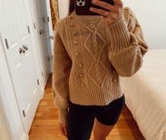 I loved this sweater! It was a little bulky/boxy, but the color and design are so stinking cute. I was worried about it being itchy, but I just wore a thick tank underneath and thought it was fine. Definitely true to size. Would rent again!