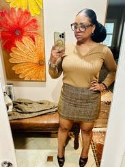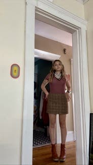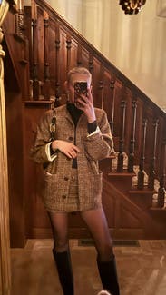 It’s giving Vivian Kensington with the frigid b* feel. Wore to an art show and felt comfortable and chic. Rented the matching jacket and paired with tall black boots. The skirt fit true to size, but moved around a bit when walking. Besides that, no other complaints.