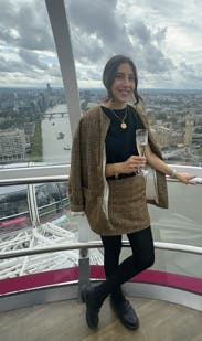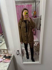 Wore the coat over the shoulders with a cream turtleneck with the skirt and brown boots. I felt so elegant. Skirt was not too short and that means a lot coming from me! Love this brand the quality feels so quiet luxury. Very warm also. Will be renting again