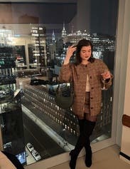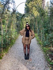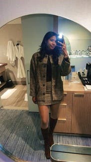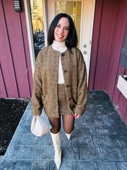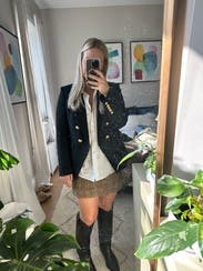 Wore a small in the skirt and a medium in the jacket for an oversized look. Such a cute fit!!