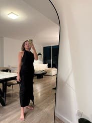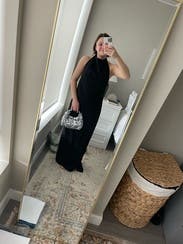 I wore this dress to my friends black tie wedding. The back is really sexy and the front is very classy balancing it out very well. The dress does require a lot of steaming and is not the fabric you’d expect. The dress feels different but it works that way if you aren’t too picky.