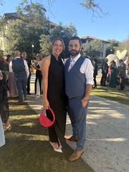 This dress was the EPITOME of sexy elegance and my new favorite RTR find! I LOVED the unique cowl neck + open back combination. The wool fabric (think: men's suit material) was high quality but also soft, breathable, and with some stretch--I danced the night away with zero issues. I recently lost some weight so this was slightly too large for me, but a few safety pins made it fit like a glove!