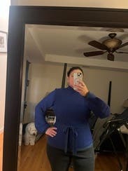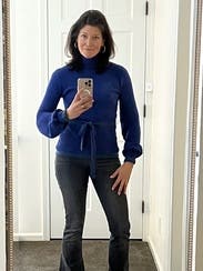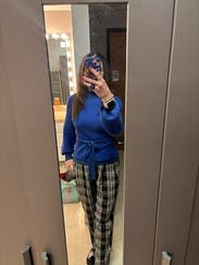 This is a cute pick, not my favorite - but a solid choice and certainly more flattering than expected. Paired it with the plaid pants and jeans and it dresses up or down. The sleeves and keyhole back make it fun