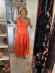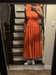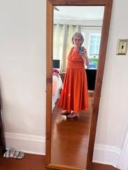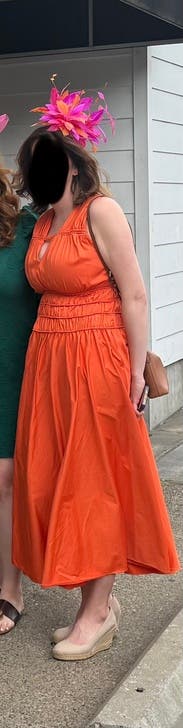 I received a lot of compliments on this dress, but I just didn’t feel comfortable in it. I thought I would love it because I had a great time in the other Roksanda dress, but it was too much fabric in all the wrong areas. The color was just so bright, even though I love orange. It was low cut in a strange way, and a lot of extra fabric in the bust area. Maybe someone with a larger chest would not have that problem. It has a lot of potential, just didn't work out for me.