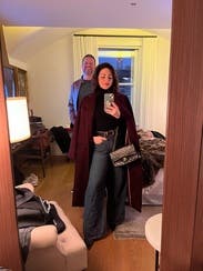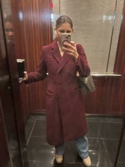 This was a phenomenal coat to wear to work but only if it’s in like 40° weather, anything below you need something a little bit warmer, but I love the color of this coat and I thought it was structured beautifully. I will rent it again. The only downside that I think to this coat is that it picks up lint like crazy so just have one of those lint rollers at home to go over it really quickly before you go out the door.