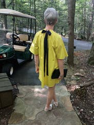 Wore this to an upscale breakfast at a hotel and felt very fancy. The back bow is the show-stopping piece, otherwise it’s a yellow balloon dress.