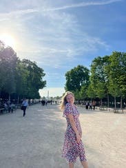 i felt so chic in this dress. it just fit so well. and it’s so nice bc it’s so breezy - even though i was sweating so much walking around france in may and june i didn’t look gross at all because this dress is so light. i bought it and love it - i wear it probably every few weeks to work!!