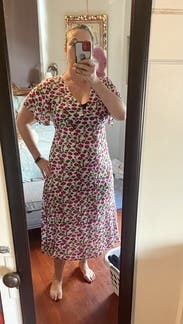 Beautiful print and nice silky fabric, loved the cut as well. The v-neck was flattering but not too low; there was just the right amount of room for my larger bottom half. Only downside was the lack of lining; definitely plan on wearing a slip or some nude shape wear/bike shorts underneath. Super breathable and comfortable for warm weather.