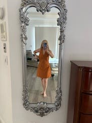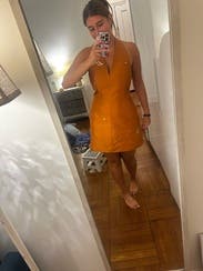 This is not a normal color I would wear but I loved it! Fit was true to size and length was great for taller girls. Open back and fun dress to wear!