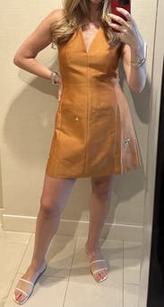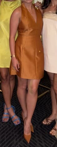 At first, I was finding the color a little strange—it’s somewhere between a bronze and a burnt orange color. Once I figured out my shoes, I was in love with this dress. The fit is incredible and really flattering, and there’s nice structure to it that just makes it feel very luxe. I loved this.