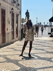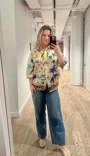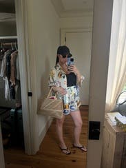 I rented this for a trip to Portugal, thinking it would be fun for a day outing. The wide border hit me in just the wrong spot and it was not flattering at all. I probably should have used it as an overshirt instead of buttoning or all the way. The print is so fun. I may rent it again and style it differently.