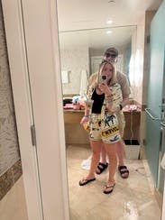 Make sure you rent a set! It’s so cute and comfy. I sized up in both shorts and shirt for baggy look.