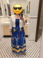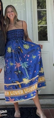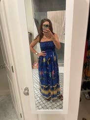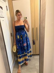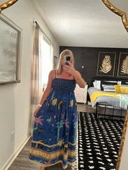 Such a fun dress! Usually smocked looks weird on my top, but this one fits nicely. Straps did keep falling down but not a deal breaker.