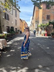 This dress feels like an elevated take on a classic sundress. The cotton-silk mix material makes it look more polished, and the fun pattern stands out. Super lightweight and easy to wear — it was perfect for a hot garden party day.