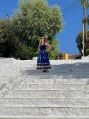 Wore this a few times on vacay! Easy for dinner out or even as a coverup walking around Greek islands. Very comfortable in a basic printed cotton. Got a bit wrinkly but wrinkles mostly fell out in the humid air.