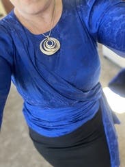 I wore this blouse to work, for dancing, with skirts, and with slacks. It is easy to wear, unique, elegant, and a gorgeous blue.