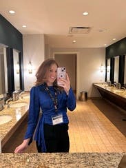 I absolutely loved this top!! I've been trying to wear more colors that suit my skin tone, hair and eye color and this was the perfect top for that. I paired with some skinny jeans and pointed toe heels. This blue top was so stunning and the perfect outfit to grab some drinks with my girlfriends.