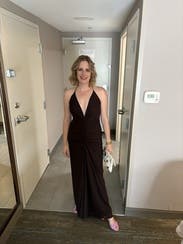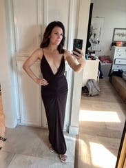 The dress is gorgeous, I received a lot of compliments, the silhouette is very flattering and gorgeous color of brown. The one major con of the dress was that I'm 5'1 and ordered an xs petite and the straps were too long and not adjustable so it made the chest area very large which ended up me buying a bra strap adjuster for the back and hid it behind my hair and then followed up with lots of boob tape.