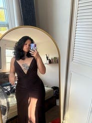 Wanted to love this dress more. Fine while standing but couldn’t sit down without the chest area gaping. Using fashion tape only gets you that far. Too revealing for me.