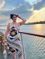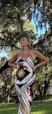 ⭐️⭐️⭐️⭐️⭐️ I’m 5’9”, 117 lbs, 32D and ordered the XSL. The fit was sleek and flattering — hugged in all the right places without feeling too tight. The length worked perfectly for my height, and the print is even more striking in person than online. The fabric felt luxe and comfortable for a full evening out. I styled it with simple heels and gold jewelry, and it was a total showstopper — I received tons of compliments. Perfect for a date night or a formal affair if you want something bold but elegant.