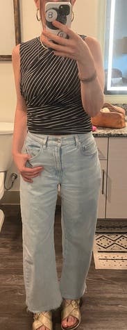 Wanted to wear this top every where. It was so comfortable and fit so nicely. Bra-friendly. Stretchy. Soft. I sized down because the XS was available and it fit with high-waisted jeans. Would've been happy in my typical size Small too!