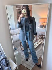 Fits great, material feels high quality. Wore this to work for a casual look and felt cute.