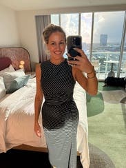 this top had just enough stretch that it was comfortable yet flattering for an easy beach date night look. Will definitely rent again