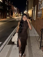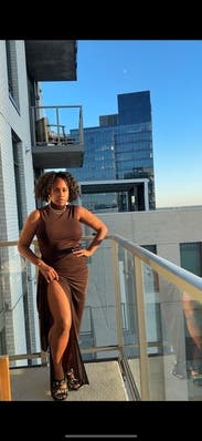 So glad I rented this! The fabric is amazing, the fit was so flattering, & the chocolate brown was everything! It’s definitely see through in the back, so I had to make sure my butt was covered with the draping but I didn’t mind! Really gorgeous dress!