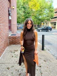 If you’re looking for a dress that gives season-appropriate tropical vacation vibes, this is the one for you. The sarong-like detail at the hips and deep slit give a casual/relaxed feel for what could be considered a formal look. The material has some sheerness to it, but not too much for anything to come through - just wear a nude thong and you’re good to go. Keep in mind that Ronny Kobo sizing tends to run small. If you’re in between sizes, I would size up. Espresso is everywhere right now. Get it while it’s hot!