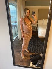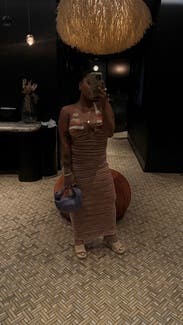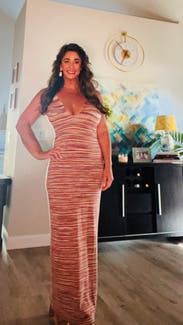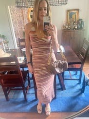 I LOVED wearing this dress! I rented it for a bachelorette and got so many compliments. It is incredibly stretchy which made it a really comfortable dress to wear all night. The cut out in the back is a fun touch too. If you are between sizes I would recommend going down a size here! #RTRteamreview