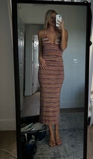 Ronny Kobo knows how to make flattering dresses! This dress is bodycon yet forgiving somehow. No bra cause of the low back, so be warned there!