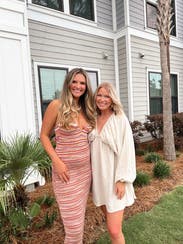 I really loved this dress so much but the itch factor is the cause for a 4/5. The colors and fit were really pretty and the dress was very stretchy given that my regular size fit me at 33 weeks. I just could never rent this again because the scratchy sweater fabric drove me crazy at dinner.