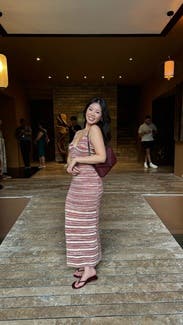 The fit was great, except for the straps. I had to use a hair tie to tie them together because they were a bit too long. Also, the material is a little hot for a tropical place, but once it’s a lil cooler at night - it’s perfect. The bottom opening is small, so you’ll have to take smaller strides. But loved the back and low cut in the front.
