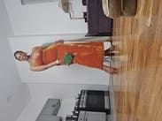 Medium was so tight in the legs that I worried about busting a seam when I was sitting so opted for the large instead which resulted in the waist/chest being too large. C’est la vie for this small-chested pear-shaped queen. Dress was a little long but loved the color, even though the direction of the fabric made the dress look more orange than gold (which is what I was originally going for). GET SOMEONE ELSE TO TIE THE BACK FOR YOU and make it snug! I absolutely ADORED the neck line and the back of this dress and how it showed off my arms and did spend several hours dancing in it. May have accidentally flashed someone while dancing because the chest was so loose, but due to the material dress tape didn’t stick very well.