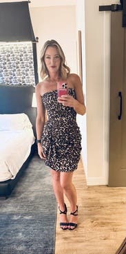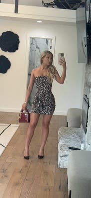 Such a cute going out dress! Loved the cheetah print and the strapless neckline. It was a bit tight around my ribcage/chest area, so if you are in between sizes I suggest sizing up for comfort. An amazing rental !!!