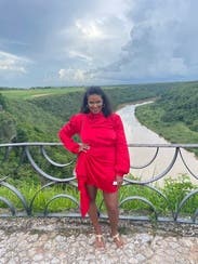 I’m absolutely obsessed with this dress. I rented it twice! The next time I rent it I will just go ahead and buy it. Lol. It’s a stunner for a date night, a wedding welcome party, or just going out for a higher end night.