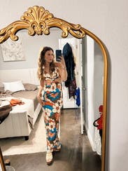 (Please excuse this weird Vegas hotel room selfie) Such a sexy dress - flattering and comfortable material. It was super wrinkly after traveling with it for a few days, so you might want access to a steamer or iron if you're not able to hang it up!