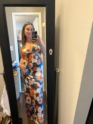 I loved this dress and got tons of compliments. However, as I wore it the dress stretched out. I probably should have gone with the small. Either way, it was a show stopper