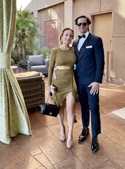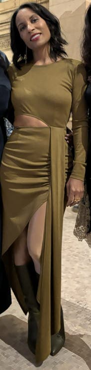 Felt very luxe but the green color also made it “earthy” enough for an outdoor wedding vibe. Still able to wear shape wear even though it had a slit and cut out as well which was awesome. I’m not in perfect shape (had a baby recently ) but the dress was flattering. Great dress!
