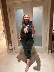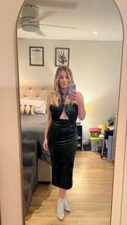 I wore this to my work’s Holiday Gala and it was the perfect dress. Got so many compliments, I was so comfy all night & felt super confident in it. So flattering, snug in all the right places & stretchy. I tried on the medium and didn’t even need to see what the large looked like bc the med fit so well!