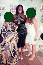 I wore this to a grand opening party with a night club after party to follow. This was my first time renting and it was such a great experience. The size XS fit perfectly and I did not even need to try on the S. I do have large breasts and this dress definitely showed a lot of them, I used double sided sticky tape and had no issues of popping out. The part that goes around your neck can be a little bothersome at first but I got used to it pretty quickly. The only issue I had were the inside straps would pop out as you can see in the close up pic. Ruined several pictures until someone pointed it out. Oh well, I got plenty more in this sexy dress! Also, it was not difficult to walk in despite the length :)