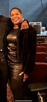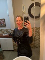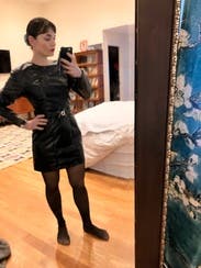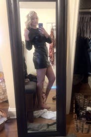 Great leather dress and flattering.